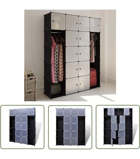 ABCRITAL The Living Store Armoire modulaire 14 compartiments Noir et blanc 37x146x180,5cm - Meuble De Rangement - Armoire Modulaire - Armoire Design
