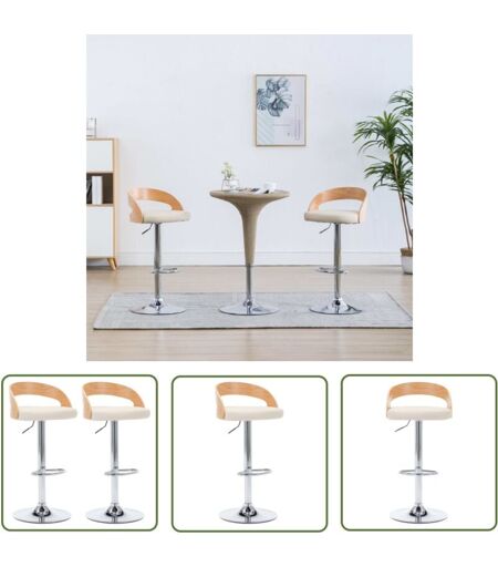 The Living Store - Tabourets de bar lot de 2 crème similicuir et bois courbé - Chaises De Bar - Tabourets De Bar - Chaise De Comptoir - Meubles De