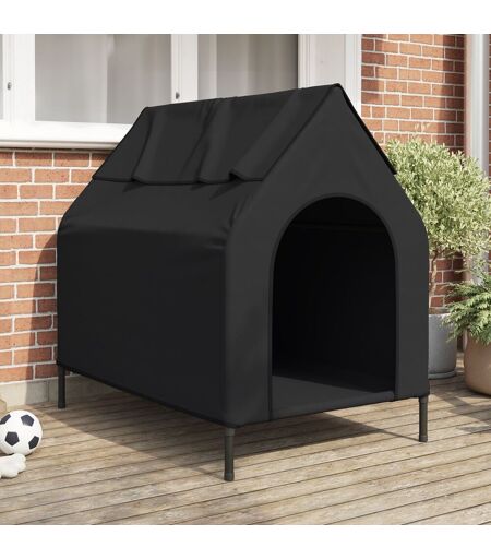 Vidaxl Maison Pour Chien En Tissu Oxford Noir Et Acier