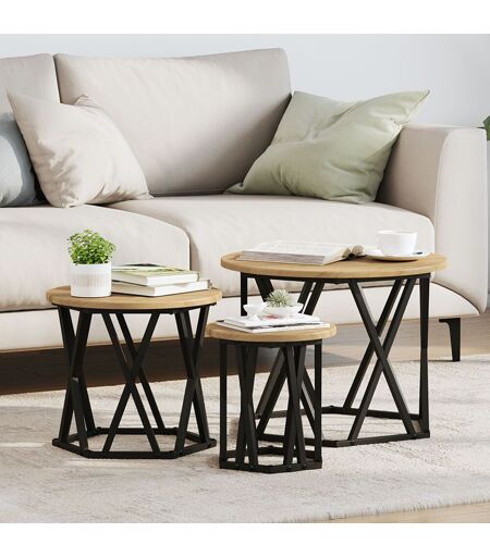 Tables D'appoint Empilables Vidaxl 3 Pcs En Bois D'ingénierie Chêne Artisan