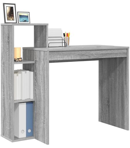 Vidaxl Bureau D'ordi Gris Sonoma Panneau De Particules Moyen Étagères
