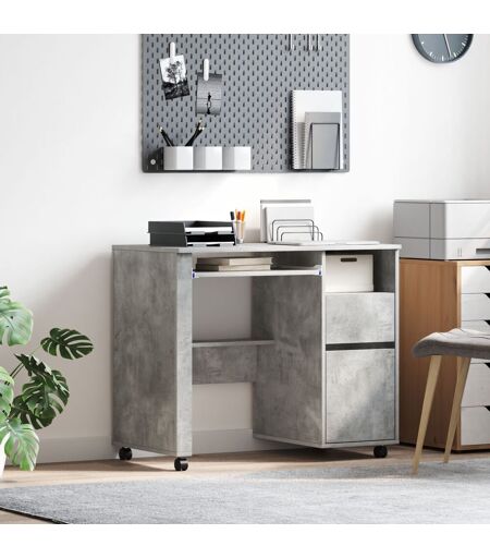 Vidaxl Bureau D'ordi Gris Béton Panneaux De Particules Moyen Roues