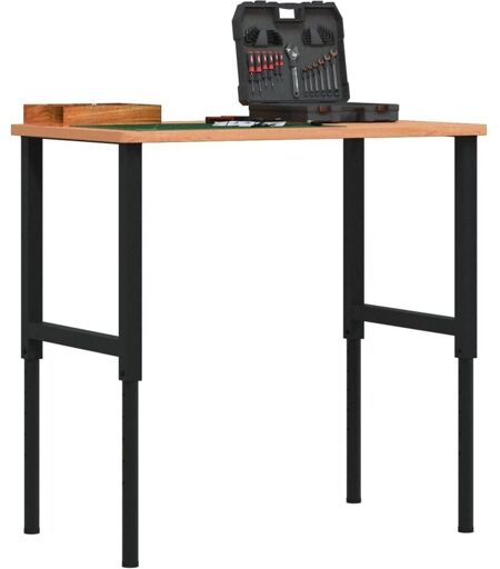 L'établi est une aide précieuse si vous souhaitez terminer des travaux de réparation ou réaliser vos rêves de bricolage ! Matériau robuste et stable : le bois de hêtre massif est un beau matériau naturel. Le bois de hêtre a un grain droit et est très durable.Cadre stable et durable : le cadre en métal enduit de poudre est solide, stable, durable et résistant à la corrosion et aux intempéries, ce qui garantit des performances durables.Grande surface de travail : la table de travail offre une grande surface de travail pour placer vos perceuses, tambours de câble et autres accessoires d'outillage.Utilisation polyvalente : doté d'un design simple et épuré, vous pouvez l'utiliser comme établi ou comme table de travail selon vos besoins. Le poste de travail est conçu pour être un meuble pratique et commode. Bon à savoir :Chaque article est unique, avec des variations de couleurs et de grains. La livraison est aléatoire, ce qui garantit l'exclusivité et l'individualité de votre produit. Attention :Ce dessus de table n'a pas de trous pré-percés et les vis ne sont pas incluses. Les trous doivent donc être pré-percés et les vis doivent être achetées avant d'assembler cette table de travail. Dimensions totales : 100 x 60 x (71,5-98) cm (L x l x H) Assemblage requis : oui Dessus de table : Matériau : bois de hêtre massif avec finition laquée Épaisseur du plan de travail : 2,5 cm Forme : rectangulaire Pieds de la table : Couleur : noir Matériau : métal enduit de poudre Dimensions : 55 x (69-95,5) cm (l x H) Taille de vis recommandée (non incluses) : 5 x 25 mm (Diamètre x L), max. 16 pcs Hauteur réglable Facile à attacher La livraison contient : 1 x dessus de table 2 x pied de table ...