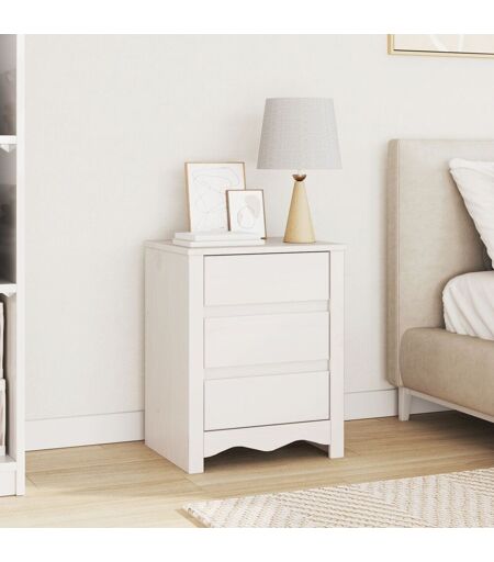 Table De Chevet Vidaxl """"Drammen"""" Blanche 45x35x56 Cm En Bois Massif De Pin