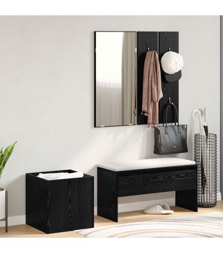 Cet ensemble de meubles d'entrée allie pratique et style. C'est exactement ce qu'il vous faut pour redonner vie à votre hall ou autre pièce. La finition noire lui donne un look moderne, et les différents éléments offrent plein d'options de rangement et déco adaptées à tous les styles. Construction solide : L'ensemble est robuste, fait en bois massif pour une utilisation durable et stable chez vous. Fini noir chic : Le look mat s'intègre facilement à une déco moderne tout en donnant du style. Utilisation variée : Parfait pour toute pièce, cet ensemble couvre le rangement, la déco et la praticité dans les salons ou chambres. Miroir pratique : Idéal pour les dernières retouches et pour agrandir visuellement votre hall. Rangement flexible : Avec un banc et des étagères, cet ensemble maximise votre espace de vie. Articles : 5 Couleur : Noir Forme : Rectangulaire Matériau : Bois naturel Fini : Mat Intérieur/Extérieur : Intérieur Couverture : Non incluse Utilisation : Salon Ensemble de tête : Non inclus Hauteur de surface : 2 cm Hauteur des pattes : 30 cm Oscillation : Non Échelle : Non Marque : vidaXL Contenu de la livraison : Cabinet mural, banc de rangement, planteur Assemblage : Oui Nombre de personnes conseillé pour l'assemblage : 1 SKU : 3332489 EAN : 8721158839152 ...