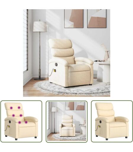 THE LIVING STORE Fauteuil de massage inclinable Crème Tissu - Fauteuil Inclinable - Fauteuil Massant - Chaise Relaxante - Massage Vibratoire - Relaxation - The Living