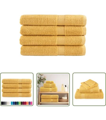The Living Store Serviettes de qualité supérieure SOLUND 4 pcs doré 600 g/m² - Serviettes De Bain - Serviettes De Plage - Serviettes Dorées