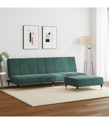 Vidaxl Canapé-Lit À 2 Places Avec Repose-Pied Vert Foncé Velours