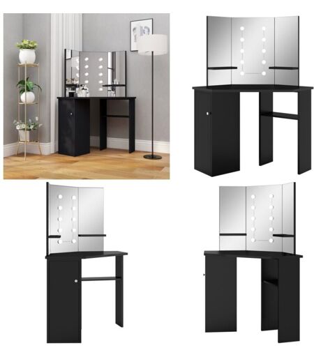 Vidaxl - Coiffeuse d'angle avec led Noir 111x54x141,5 cm - Coiffeuse - Meuble De Salle De Bain - Vanity - Dressing - Miroir - Home & Living