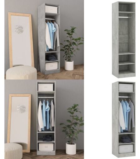 Garde-robe Gris béton 50x50x200 cm Bois d'ingénierie Cette garde-robe compacte facilite l'accès à vos vêtements ou accessoires du quotidien. Elle fournira une solution de stockage parfaite et ajoutera une touche chic à votre maison existante. Cette garde-robe est faite de bois d'ingénierie, ce qui lui assure solidité, durabilité et longévité. Elle comprend 3 petits compartiments et 1 grand compartiment avec tringle pour vous permettre de ranger vos tenues plus longues et d’autres vêtements pliés ou accessoires, tels que pulls, jeans, chapeaux, sacs à main, etc. Toute la surface est facile à nettoyer. Cette garde-robe est facile à assembler. Vos avantages Cette garde-robe compacte offre une solution de rangement idéale et ajoute une touche élégante à votre maison ! Autres spécifications Couleur : Gris béton Matériau : bois d'ingénierie Dimensions : 50 x 50 x 200 cm (l x P x H) 3 petits compartiments 1 grand compartiment avec tringle Veuillez noter : Les vis et les chevilles pour ...