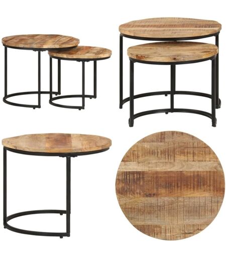 Vidaxl - Tables gigognes 2 pcs Bois de manguier brut - Table Basse - Meubles De Salon - Tables Gigognes - Bois Massif - Design Moderne - Home & Living