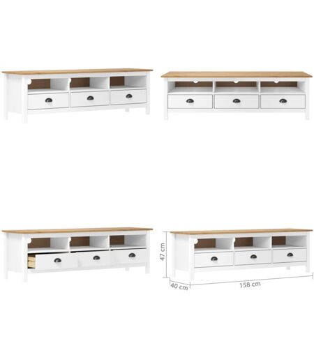 VIDAXL Meuble TV Hill Range Blanc 158x40x47 cm Bois de pin solide - Meuble Tv - Meuble Retro - Meuble Tv Design - Rangement Salon - Bibliothèque Murale
