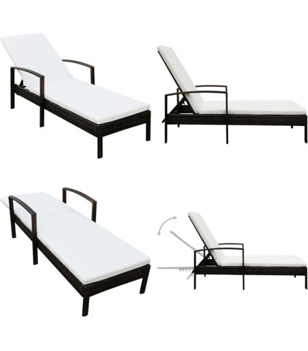 VIDAXL Chaise longue avec coussin Résine tressée Marron - Chaises Longues - Transats - Mobilier De Jardin - Salon De Jardin - Bain De Soleil - Home & Living