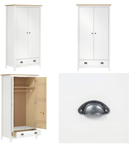 VIDAXL Garde-robe à 2 portes Hill Blanc 89x50x170cm Bois de pin solide - Garderobe - Armoire - Meuble De Rangement - Dressing - Commode - Home & Living
