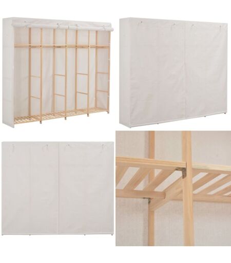 Garde-robe Blanc 200 x 40 x 170 cm Tissu Nos garde-robe fonctionnelle est non seulement une solution de rangement parfaite pour vos vêtements, chaussures, accessoires, elle constitue également un supplément décoratif unique à votre maison grâce à son design élégant et chaleureux. La garde-robe présente une structure en bois durable, avec des multiples compartiments ouverts. La housse en tissu peut garder vos vêtements hors vue, les protégeant de la poussière en même temps. Notre garde-robe en tissu est facile à assembler. Vos avantages Avec un design à la fois élégant et pratique, notre garde-robe en tissu protégera vos vêtements, chaussures ou accessoires de la poussière et de la saleté au sous-sol, dans la chambre d'amis, dans le logement loué, dans la chambre à coucher ou dans la mansarde. Autres spécifications Couleur : blanc Matériau : tissu et cadre en sapin massif Dimensions : 200 x 40 x 170 cm (l x P x H) AVERTISSEMENT : afin d'éviter qu'il ne bascule, ce produit doit être ...