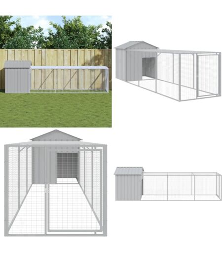 VIDAXL Poulailler avec cour gris clair 117x405x123 cm acier galvanisé - Poulailler - Cage à Poules - Abri Pour Oiseaux - Coop Pour Poules - Animal