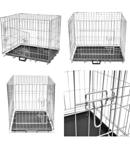 Cage métallique et pliable pour chiens L Cette cage pliable pour chiens sera une aide précieuse lors du dressage de votre ami canin. La disposition unique, avec ses fonctionnalités durables et sécurisées, en fait la cage parfaite pour presque n'importe quel endroit de votre maison. La cage présente un design élégant et pliable, qui ne prend que peu d’espace de stockage quand elle n’est pas utilisée. Il est doté de 2 portes robustes qui non seulement permettent un accès facile, mais permettent également à votre chien de ne pas pouvoir s'échapper par les portes. Le cadre en acier robuste offre une résistance et une stabilité maximales, ce qui en fait l'un des bancs les plus robustes du marché. La cage est également livrée avec un revêtement de sol en plastique robuste et facile à nettoyer. La cage pliable a un aspect simple et une finition galvanisée durable et résistante à la rouille. La construction résistante gardera votre animal de compagnie en toute sécurité. Grâce à sa taille ...