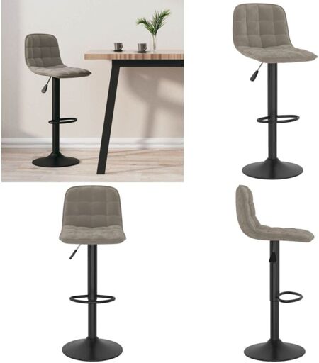 Vidaxl - Tabouret de bar Gris clair Velours - Tabouret De Bar - Tabouret De Comptoir - Chaise De Bar - Fauteuil De Bar - Siège Pivotant - Home &