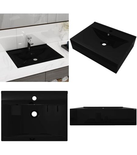 VIDAXL Vasque à poser en céramique noir perçage pour la robinetterie 60x46cm - Lavabo - Washbasin - Évier - Meuble De Salle De Bain - Salle De Bain - Home &