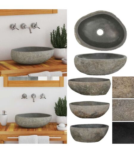 Vidaxl - Lavabo en pierre de rivière ovale (29-38)x(24-31) cm - Lavabo - Évier - Pierre Naturelle - Lavabo Oval - Meuble De Salle De Bain - Home &