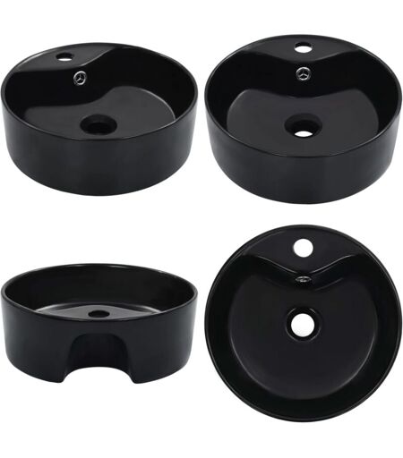 VIDAXL Lavabo avec trop-plein 36x13 cm Céramique Noir - Lavabo Rond - Lavabo Céramique - Lavabo Salle De Bain - Lavabo Noir - Meuble Salle De Bain - Home &