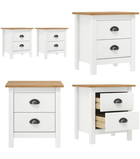 VIDAXL Tables de chevet Hill 2 pcs Blanc 46x35x49,5 cm Bois pin solide - Table De Chevet - Meuble De Chambre - Commode - Tiroir - Design Moderne - Home &