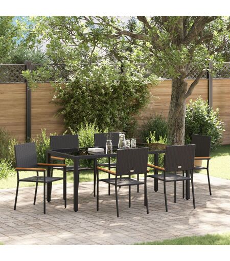 Vidaxl Ensemble De Jardin 7 Pièces Noir Poly Rattan, Chaises Jardin Empilables Avec Coussins Vidaxl - 2 Pièces Noir Poly Rattan