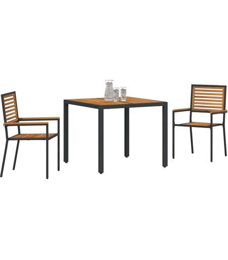 Ensemble Repas Jardin Vidaxl 3 Pièces Poly Rotin Noir Et Acacia, Chaises Empilables Vidaxl Avec Coussins 2 Pcs Poly Rotin Noir