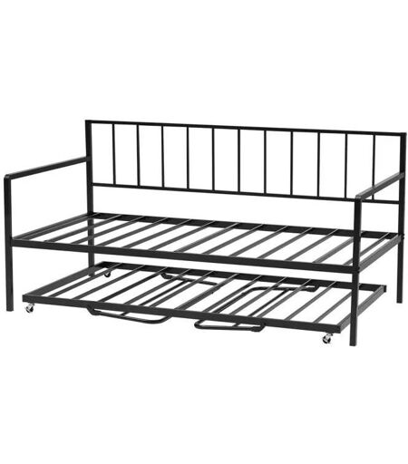 Cadre De Lit De Jour Simple En Métal Durable-Duoku-Lit Gigogne Ajustable En Hauteur-Avec Eclairage Led Et Station De Charge-Noir
