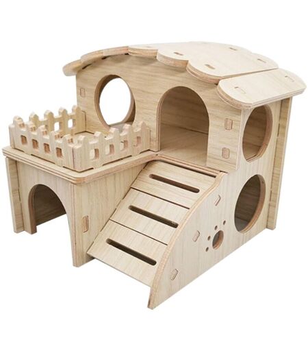 FEI YU Cachette pour animaux de compagnie, maison pour hamster, cabane en bois de luxe à deux niveaux, jouet à mâcher