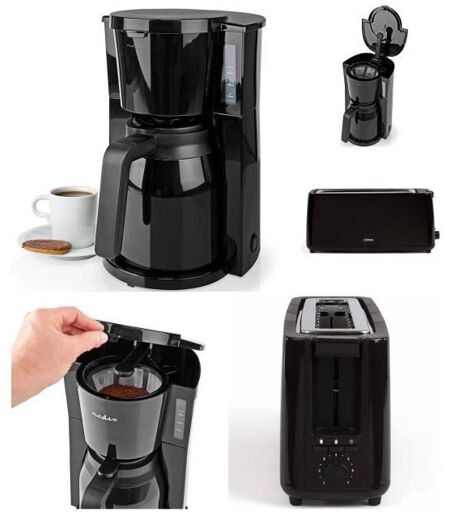 Livoo Cafetière Machine À Café Electrique Isotherme Noire 1.5l 900w + Grille-Pain Noir Longue Fente 900w 7 Positions Ejection Automatique