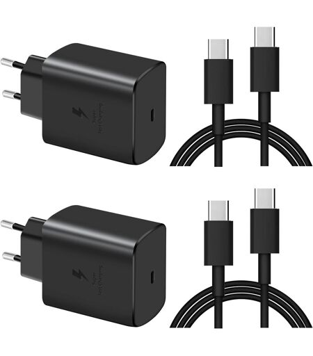 PD 45W Super Fast Charger USB C45 Watt super fast type c charger for Samsung & 1,8m/6ft Type-C to Type-C fast charging cable,Charge Samsung Galaxy S23 de 0% à 50% en seulement 20 minutes ou charge complètement iPad Pro 12,9 pouces en 2 heures. Plus rapide que les autres chargeurs 25w/15w ; il est 5 fois plus rapide que le chargeur mural USB C standard, 10 fois plus rapide que le port USB du PC, ce qui vous permet de gagner du temps.2 Pack 1,8M USB C to USB C CableLe chargeur mural 45W super rapide est livré avec un câble USB-C à USB-C détachable.La longueur sans enchevêtrement de 1,8m/6ft est pratique à utiliser lors de la charge et de la synchronisation à la maison/bureau/voyage/lit/hôtel/chambre et plus encore. Conçu pour la charge rapide et le transfert de données pour répondre aux demandes variées de votre vie quotidienne.Compatibilité universelle du chargeur super rapide Le chargeur rapide pour kit Samsung prend en charge la plupart des appareils USB C, y compris Samsung Galaxy S21/ S21+/ S21 Ultra 5G/ S22/S22+/S22 Ultra/S23/S23+/S23 Ultra/S24/S24+/S24Ultra/Note10/ 10+, Note 20/20 Ultra 5G, S20/S20+/S20 Ultra 5G/ S20 FE(Fan Edition) 5G, S10, S10+, Galaxy Z fold 3/ Galaxy Z Flip 3,S10e, S9, S9+ Plus, S8, S8+ Plus/Active, Google Pixel, Pixel 2, Pixel 3, Pixel XL, Pixel 2XL, Pixel 3XL, Pixel 3A, LG G7 Thing, G6, G5, V20, V30, V35, V30S, V40 ThinQ Plus, etc.Dependable SafetyOur 45W USB C Fast Charging Block has multiple built-in safeguards to protect your devices from damage caused by overcharging, short circuit, overheating, overcurrent, overvoltage.Au fur et à mesure que la batterie se remplit grâce à la charge continue à grande vitesse, la puissance de charge est progressivement réduite pour diminuer la chaleur et assurer la sécurité et la longévité de votre appareil.What You Get2 x chargeur rapide USB C 45W, 2 x câble de charge rapide Type C vers Type C 1,8 m / 6 pieds. Nous offrons un service d'échange de 12 mois, et un service client amical 24 heures, s'il y a un problème de qualité, s'il vous plaît n'hésitez pas à nous contacter !.La livraison depuis la France est prévue dans 5 jours ouvrés, n'hésitez pas à passer votre commande ...