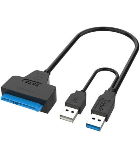 CLOUDDS-Câble Usb Vers Sata,Adaptateur Usb 3.0 Vers Sata 22 Broches Pour Disque Dur De 2,5 Pouces,Câble Convertisseur Externe Usb Pour Disque Dur Ssd/Hdd De 2,5 Pouces (Dual Usb)