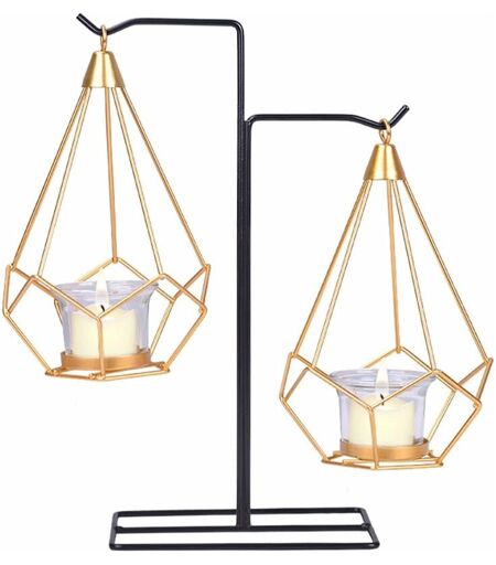 KUEATILY Bougeoirs Decoration, Bougeoir géométrique en Métal Bougeoir Fer Forgé Style Nordique Photophore en Métal Support de Bougie en Verre Géométrique en