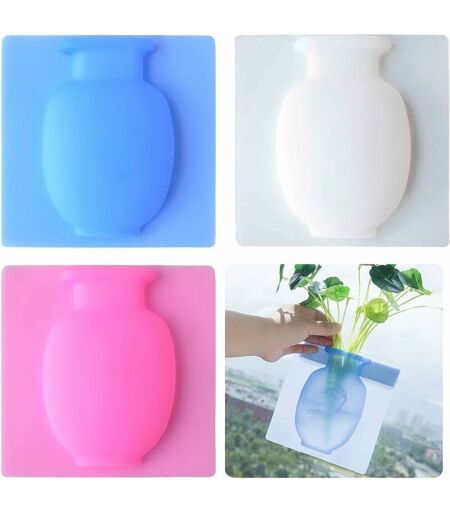 KUEATILY 3 Pièces Vase SiliCône, Vase SiliCône Autocollant, Vase Collant, Vase Adhesif, Vase Mural SiliCône, Décor à la Maison Créatif, Décoration Murale,