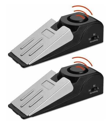 BARES Alarme d'arrêt de porte sans fil Mini, paquet de 2 butées de porte en forme de cale bloquant le système de sécurité avec une sirène de 120 dB-Fei Yu