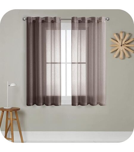 KUEATILY 2 pcs Rideau Voilage Brun140x280cm à Oœillet Semi-Transparent en Effet Lin Décorations d'intérieur de Fenêtre de Salon Moderne Chambre Cuisine Balcon