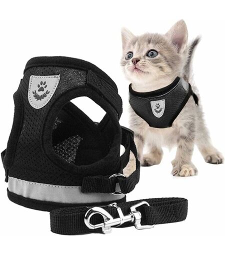 LITZEE Harnais Chat,Harnais pour Chat,Laisse Harnais Chat,Harnais Laisse pour Chat,Harnais pour Chat avec Laisse Gilet Réfléchissant,Réglable Harnais Laisse
