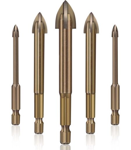 GABRIELLE Foret Carrelage Verre Ceramique betterlife,Outil de perçage Universel Efficace,forets multifonctionnels en carbure cémenté en Croix,5 forets pour