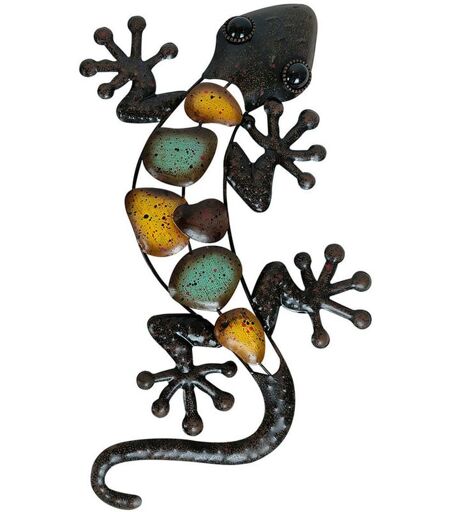ENSOLEILLE Métal Gecko décoration murale extérieure lézard jardin Art décorations suspendues pour patio ou clôture, 15 pouces