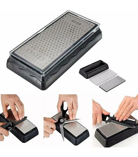 ENSOLEILLE Pierre à Aiguiser Plaque d'affûtage Diamant Double-Face, 400/1000 Grit Couteau aiguiseur Pierre, 150x63mm Surface de nid d'abeille extérieure Cuisine