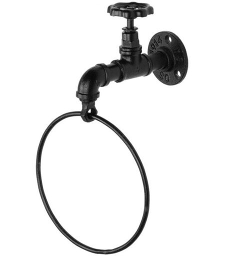 L'anneau porte-serviettes mural industriel en métal noir est parfait pour suspendre les essuie-mains et les serviettes dans la salle de bain ou la cuisine (Notez que ce produit n'inclut pas les serviettes) Peut également être utilisé pour accrocher des foulards et des bijoux La combinaison d'éléments industriels et ruraux crée des décorations uniques pour différentes couleurs Facile à installer sur la surface du mur avec le matériel approprié (le matériel d'installation n'est pas inclus) Taille approximative : 6,5 longueur x 4,7 largeur x 10,8 hauteur (pouces) conception spéciale La conception spéciale du robinet industriel empêche la serviette de toucher le mur. Ce porte-serviettes est facile à installer au mur. Il crée un espace supplémentaire pour suspendre vos essuie-mains et laisse suffisamment d'espace pour que les serviettes humides sèchent rapidement. Anneau porte-serviettes en métal noir design robinet industriel antique mural fort et robuste Le métal industriel noir est ...