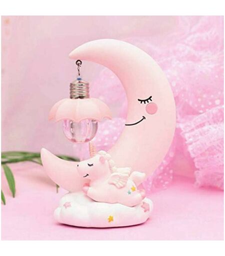 FEI YU Led Veilleuse Résine Lune Licorne Dessin Animé Bébé Lampe de Chevet Enfants Enfant Fille Jouet Cadeau De Noël Décoration de Chambre Enfant (Rose)
