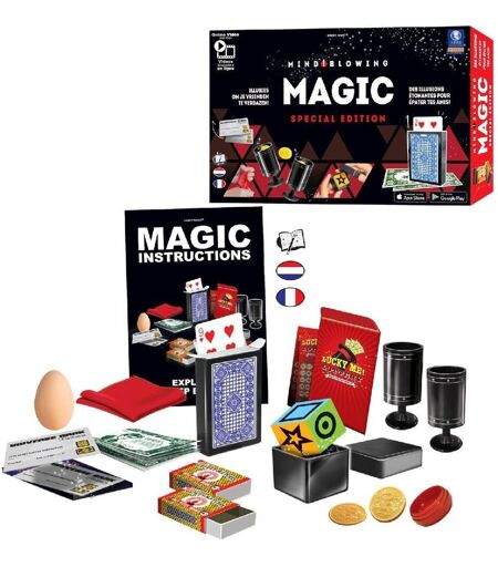 Découvre Mind Blowing Magic, le coffret parfait avec 34 tours sensationnels ! Épate ton public avec des illusions étonnantes comme faire disparaître un jeu de cartes, faire sauter des pièces entre des gobelets et bien plus encore. Avec une boîte de rangement pratique, des instructions claires étape par étape et des tutoriels vidéo en ligne, apprendre les tours devient un jeu d'enfant. Tout ce dont tu as besoin pour devenir un véritable magicien est à portée de main ! Et le meilleur de tout, une fois le spectacle terminé, tu pourras facilement ranger tous tes accessoires de magie dans le sac fourni avec le coffret. La Magie Étonnante est vraiment un coffret unique à ne pas manquer ! ...