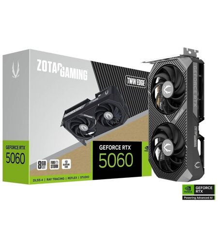 ZOTAC GAMING GeForce RTX 5060 Twin Edge - Carte graphique - GeForce RTX 5060 - 8 Go GDDR7 - PCIe 5.0 x8 - HDMI, 3 x DisplayPort - boîte