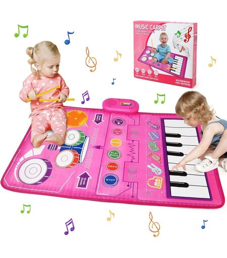 Jouets éducatifs 2 EN 1 Jouets interactifs 2 en 1 avec clavier de piano et de la fonction de tambour.Côté piano ont 6 types de sons d'instruments (piano, violon, vibraphone, trompette, accordéon, guitare).Côté batterie de jazz a 2 bâtons pour taper.Développement précoce Ce tapis de jeu comprend un clavier de piano, une batterie jazz, 13 chansons intégrées, 6 instruments, une fonction d'enregistrement.,tout en s'amusant Stimuler la pensée logique et la créativité des enfants.il peuve aussi cultiver la capacité de concentration des enfants, répondre aux différents besoins des enfants.¿Jouet Portable Conception pliable de nos tapis de danse ,pratique à ranger,facile à transporter et gagner de la place,vous pouvez facilement l'util r avec vos enfants à l'extérieur ou à l'intérieur.C'est le jouet parfait pour les enfants qui voyagent ou en vacances.Matériel sûr et durable Ce tapis est fait d'un excellent matériau polyethene + fibre de polyester qui ne contient pas de substances nocives,surface étanche et peut être essuyé/nettoyée facilement,la face arrière est antidérapante.L'intérieur est en tissus comfortables non tissés sans odeur et non toxique.Excellente idée cadeau Le tapis d'instruments de musique 2 en 1 est un cadeau parfait pour les anniversaires, les festivals et toutes les oc ns familiales, offrez-le à vos enfants, votre famille et vos amis pour passer un moment inoubliable ensemble.AttentionÀ util r sous la surveillance dun adulte.La livraison depuis la France est prévue dans 5 jours ouvrés, n'hésitez pas à passer votre commande ...