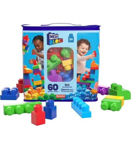 KALWL-Mega Bloks,Blocs De Construction,Grand Sac De Construction Bleu,Couleurs Classiques,60 Blocs De Construction Empilables,Jouet Enfant,Jouet Pour Enfant De 1 Ans Et Plus,Dch55