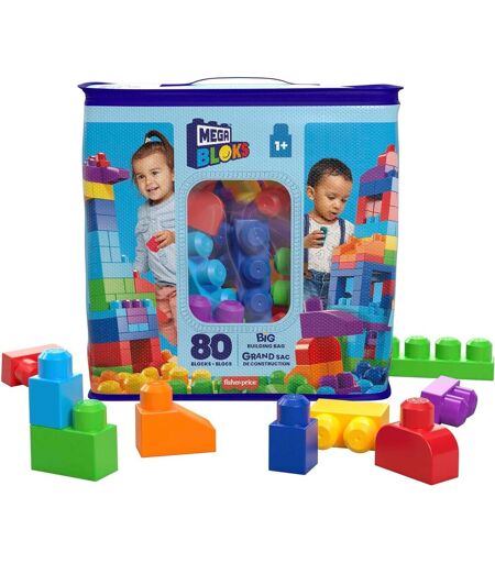 KALWL-Mega Bloks Sac Bleu,Jeu De Blocs De Construction,80 Pièces,Jouet Pour Bébé Et Enfant De 1 À 5 Ans,Dch63