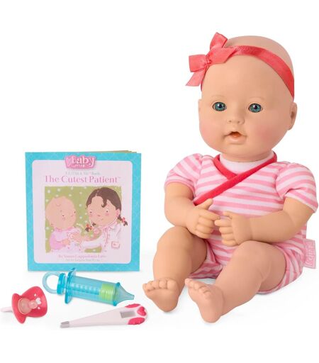 Cuddly Soft Body Baby Sweetheart is a huggable, soft baby doll with an adorable newborn look. Their 12"" size make Baby Sweetheart the perfect baby dolls for toddlers to easily carry and care for. Baby Sweetheart can be a boy or a girl, it's up to you!Realistic Details Baby Sweetheart has bright blue eyes, rosy round cheeks, and a mouth shaped perfectly for a bottle or a thumb. Notice the slightly sweet scent, just like a real baby!Read & Play Baby Sweetheart comes with an easy-to-read storybook to practice reading your newborn doll to sleep! The beautiful hand-painted illustrations help the story come to life. Give baby a check-up with the included check-up toys!Includes 12-inch baby doll wearing an attached onesie and bow, a thermometer, syringe, pacifier, and storybook.Age Range suitable for children ages 2 years old and up (small parts).AttentionContient un jouet. La surveillance d'un adulte est recommandéeAttentionÀ util r sous la surveillance dun adulte.La livraison depuis la France est prévue dans 5 jours ouvrés, n'hésitez pas à passer votre commande ...