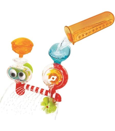 LE LABO DE LEAU Ce jouet de bain pour bébé est parfait pour amuser votre enfant durant la douche. Le laboratoire d'eau transparent permet à votre enfant de voir la double réaction en chaîne quenclenche lécoulement de leau !UN INSTANT DE PLAISIR Le tube à essai permet de verser leau dans les 2 entonnoirs différents pour créer 10 jets deau, faire rouler les yeux, faire tourner lhélice. Un pur moment de partage et d'éveil.UN JOUET ÉDUCATIF Notre fantastique jouet de bain att ra la curiosité de bébé tout en éveillant les sens. Stimulation tactile, visuelle, coordination ?il-main, ce jeu fera le bonheur de votre nouveau-né.REVOLUTION DES JOUETS DE BAIN Nos jouets sont stimulants, interactifs et hautement innovants. Une toute nouvelle approche du jeu et de lapprentis . Notre gamme de jeux de bain Yookidoo, lancée il y a plus de 10 ans, a changé à jamais la folie du bain avec vos enfants.YOOKIDOO Une marque créée pour les bébés afin de les aider dans leur développement, lexploration et la découverte. Des millions de parents heureux et des millions de bébés joyeux dans plus de 50 pays à travers le monde..La livraison depuis la France est prévue dans 5 jours ouvrés, n'hésitez pas à passer votre commande ...